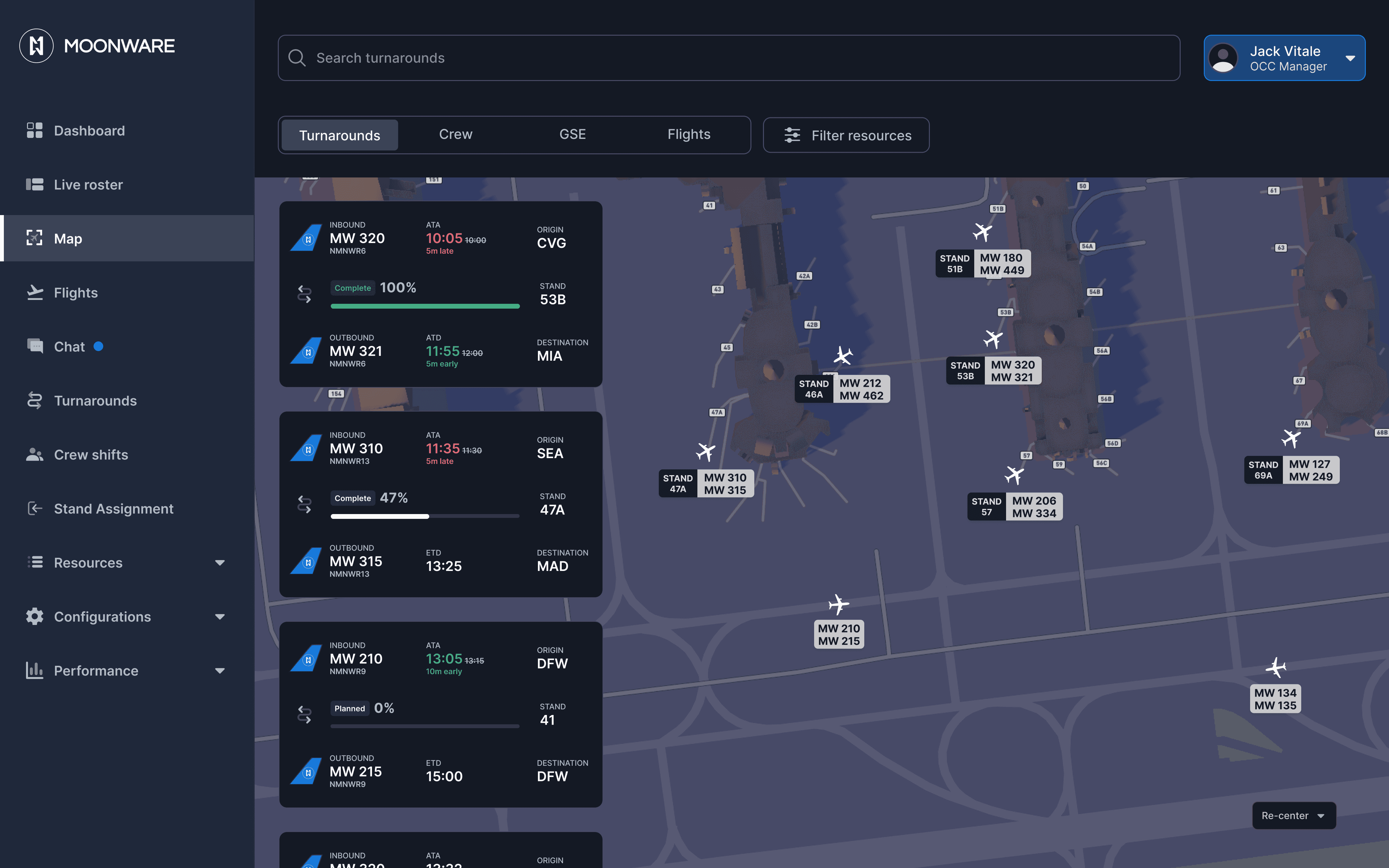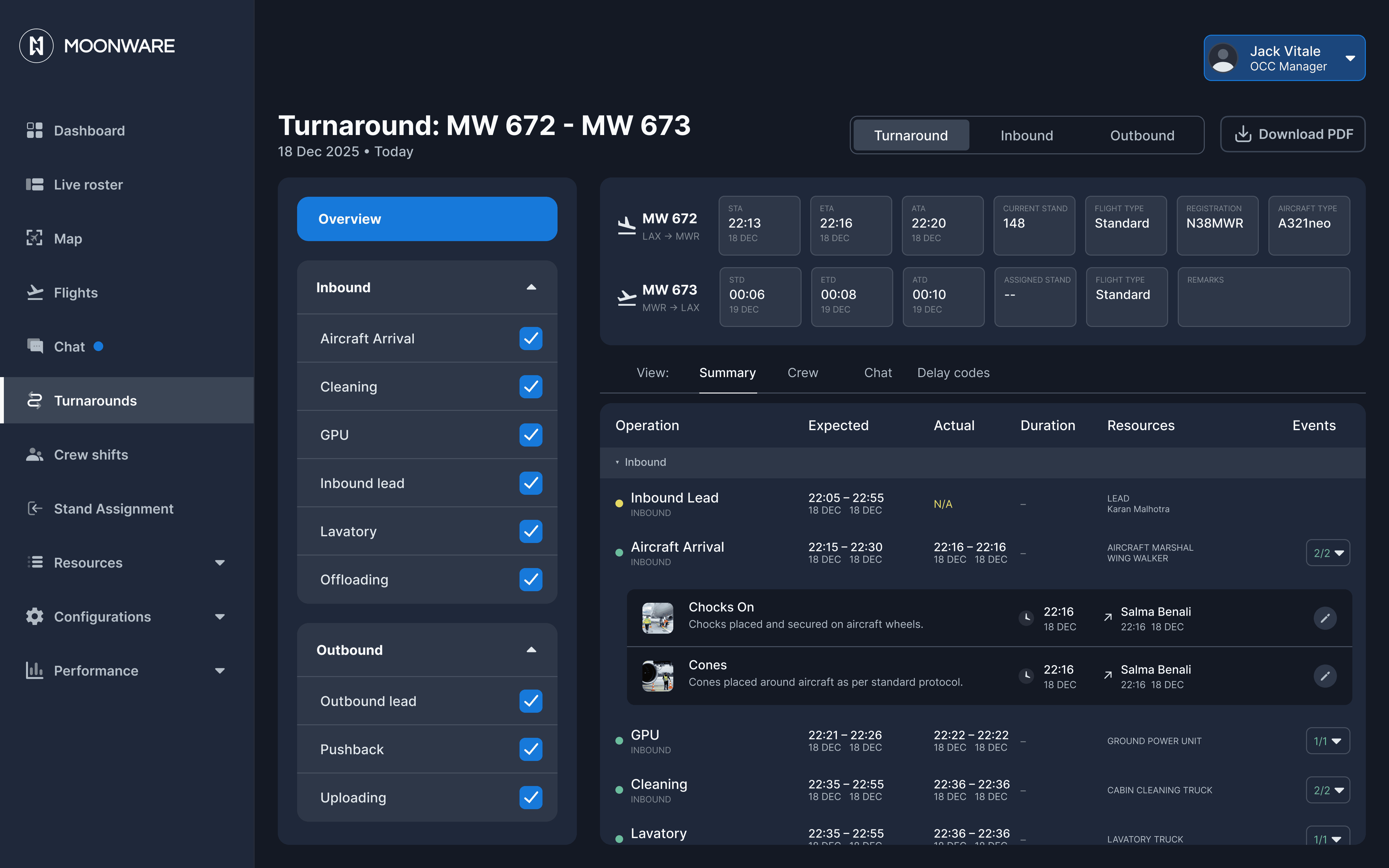 Gain real-time visibility into ground operations to anticipate disruptions and adapt quickly to schedule changes. Dynamic task adjustments and resource coordination help contain the ripple effects of delays and maintain operational flow.
